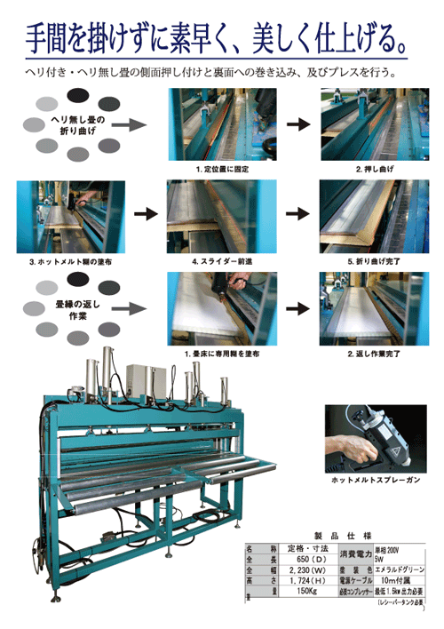<半畳用ホットプレス機&畳表折曲機 SPコンバイン>